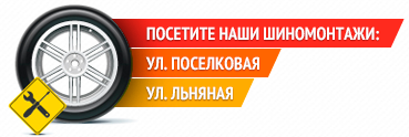25.11.13Внимание! Переобувка началась!На наших шиномонтажах Вы можете заменить летнюю авторезину на зимнюю, быстро, качественно и без очереди. Достаточно записаться, позвонив по телефонам: 55-45-13 ул.Поселковая д.35 и 22-32-22 ул.Льняная 4а. Мы ждем Вас!